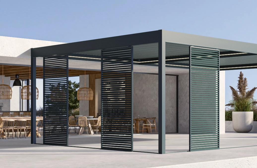 - Ästhetisches Design: Die Lamellen fügen sich nahtlos in das Design der Pergola ein und bewahren deren elegantes Erscheinungsbild.
