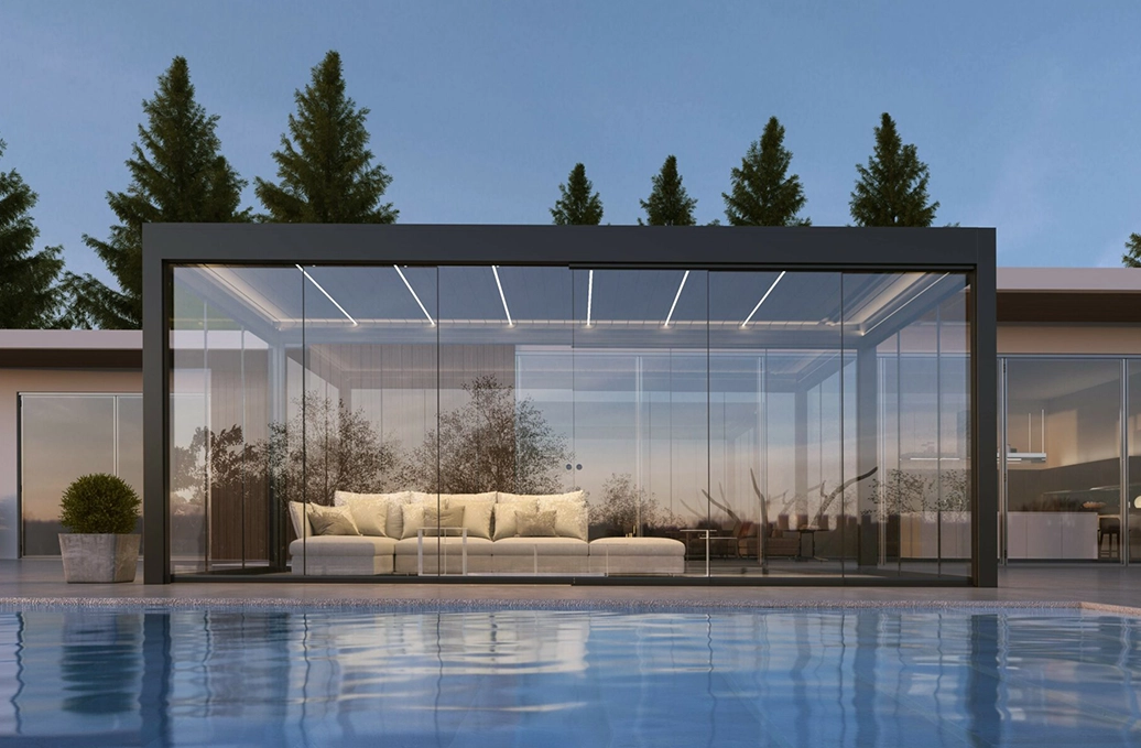Verwandeln Sie Ihre Pergola mit unseren hochwertigen Verglasungslösungen in einen geschützten, ästhetisch ansprechenden Ort, der das ganze Jahr über Komfort und Stil bietet.
